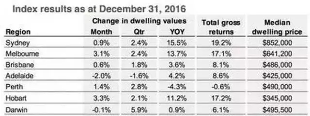 根据澳洲权威房地产研究机构Corelogic RP Data最新数据显示:2016年整年全澳首府城市房价在2015年的基础上平均增长10.9%,是自2009年至今增长速度最快的一年;就投资回报来看(物业净值增长+租金回报),别墅住宅作为主要投资主体,8大首府城市平均别墅回报率达14.7%。