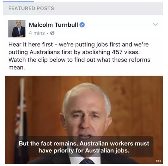 今天,澳洲总理Malcolm Turnbull在FACEBOOK上公布重磅消息: